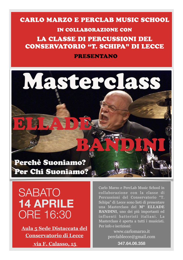 Una Masterclass di Batteria con il M° Ellade Bandini uno dei batteristi italiani più importanti ed influenti, da